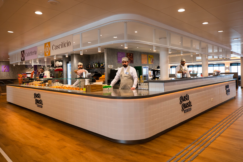 Il locale, posizionato a prua, all'interno del quale i passeggeri troveranno un'area microonde dedicata, è circondato da vetrate che offrono una vista panoramica e suggestiva offre circa 447 posti a sedere disposti intorno all'area ristoro caratterizzata anch'essa da una cucina "a vista".
