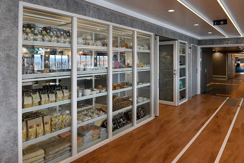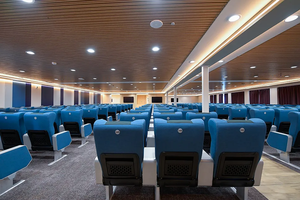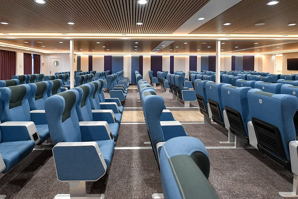 Lungo entrambi i lati della nave, da poppa a prua, si sviluppano le due promenade, arredate con poltrone e divani, ove i passeggeri potranno trascorrere comodamente la loro traversata, in un ambiente moderno e raffinato. Per rispondere al meglio alle esigenze di tutti i tipi di passeggeri, lungo i corridoi è presente un percorso per ipovedenti.